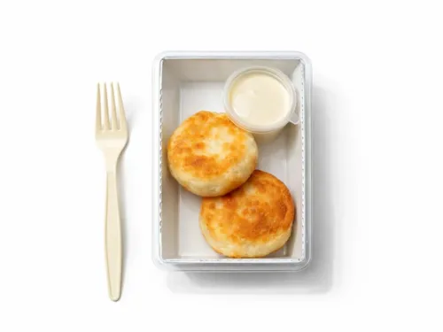 Нежные творожные сырники с золотистой корочкой, поданные с ароматным сгущённым молоком. Классический завтрак, в котором сочетаются мягкая текстура и насыщенная сладость.